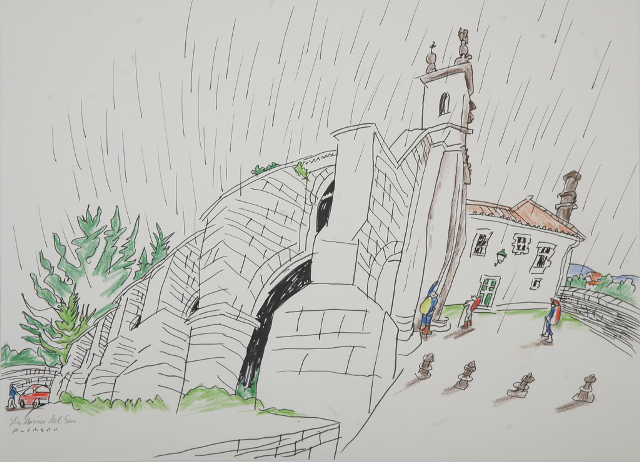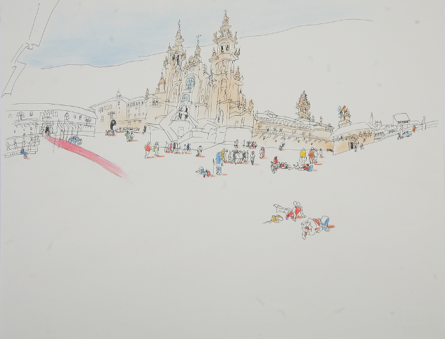 Alfredo González dibujó el Camino de Santiago coincidiendo con la peregrinación que realizó en 1991, estos dibujos fueron objeto de una exposición en este mismo museo bajo el título: Alfredo dibuja el Camino. Pero aún quedaba algo pendiente, por eso en el año 2012 Alfredo volvió a Compostela ya que era un compromiso que había asumido con este museo. Se movió silencioso por la ciudad captando lo más monumental y lo más doméstico, lo más urbano y lo más rural. Dibujó por fin Santiago!