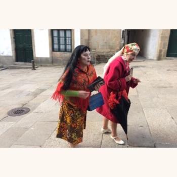 As irmás Fandiño tamén eran coñecidas polo alcume de ‘As dúas en punto’, xa que a esa hora e con precisión milimétrica saían a pasear para escapar da soidade dunha dura existencia, malia ter que soportar a incomprensión e a burla dalgúns. Se chovía, o que sucedía con frecuencia, o paseo do mediodía desenvolvíase pola rúa do Vilar, onde tiña o estudio Guitián, senón facíano polas rúas das Orfas e A Caldeirería. Nesta ocasión, e de xeito excepcional, modificaron o seu habitual recorrido e achegáronse ao museo para 'inaugurar o seu retrato' e celebrar con todos nos o Día Internacional do Teatro.