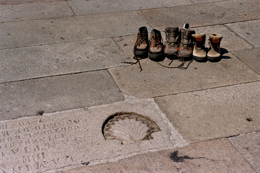 Exposición de fotografías a través das cales se reflicten distintos momentos, expresións, "rituais" prácticos do camiñante, transportes, diversidade étnica e cultural que ofrecen os peregrinos que chegan por fin a Santiago de Compostela. Esta selección de retratos mostra con evidente forza emocional, sentimentos, emocións e accións que son comúns á inmensa maioría dos que, despois de percorre-lo Camiño de Santiago, chegan non só a unha cidade emblemática e ansiada senón a un punto concreto, a Praza do Obradoiro, que representa a verdadeira chegada, o primeiro encontro auténtico coa cidade e a meta tan longamente cobizada.